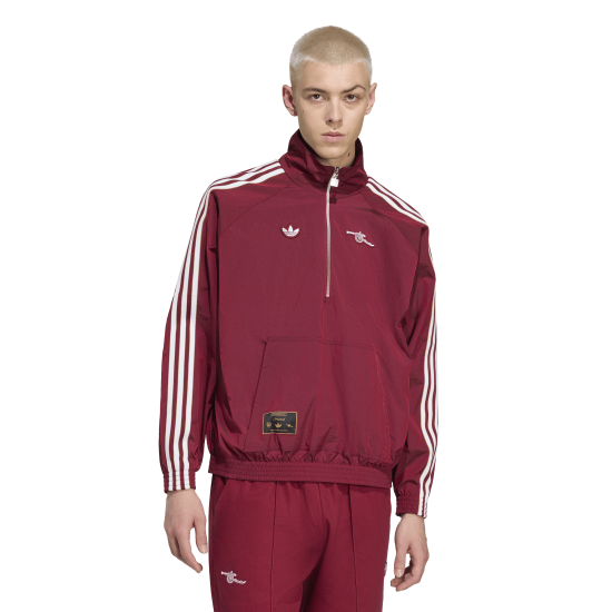 Soccer terrace culture of the 1980s returns in the shape of this adidas Arsenal jacket. Starring either side of its prominent half-zip closure, a Trefoil and cannon badge team up for a retro look. Lined with soft single jersey fabric, this top's ripstop shell will keep you comfortable when your beautiful game takes you out and about.