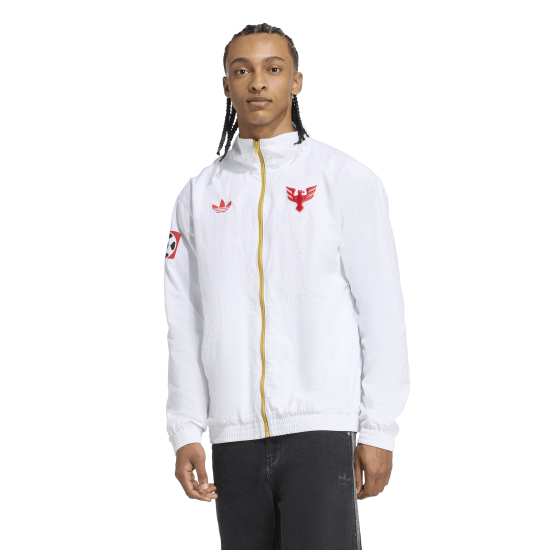 Celebrating their glorious start. Part of a special adidas collection, this soccer jacket pays homage to D.C. United's title-winning early days. Mesh-lined woven fabric keeps you comfortable in your colors. The club's secondary crest on the front and a bold team name on the back ensure everyone knows you're part of the team.