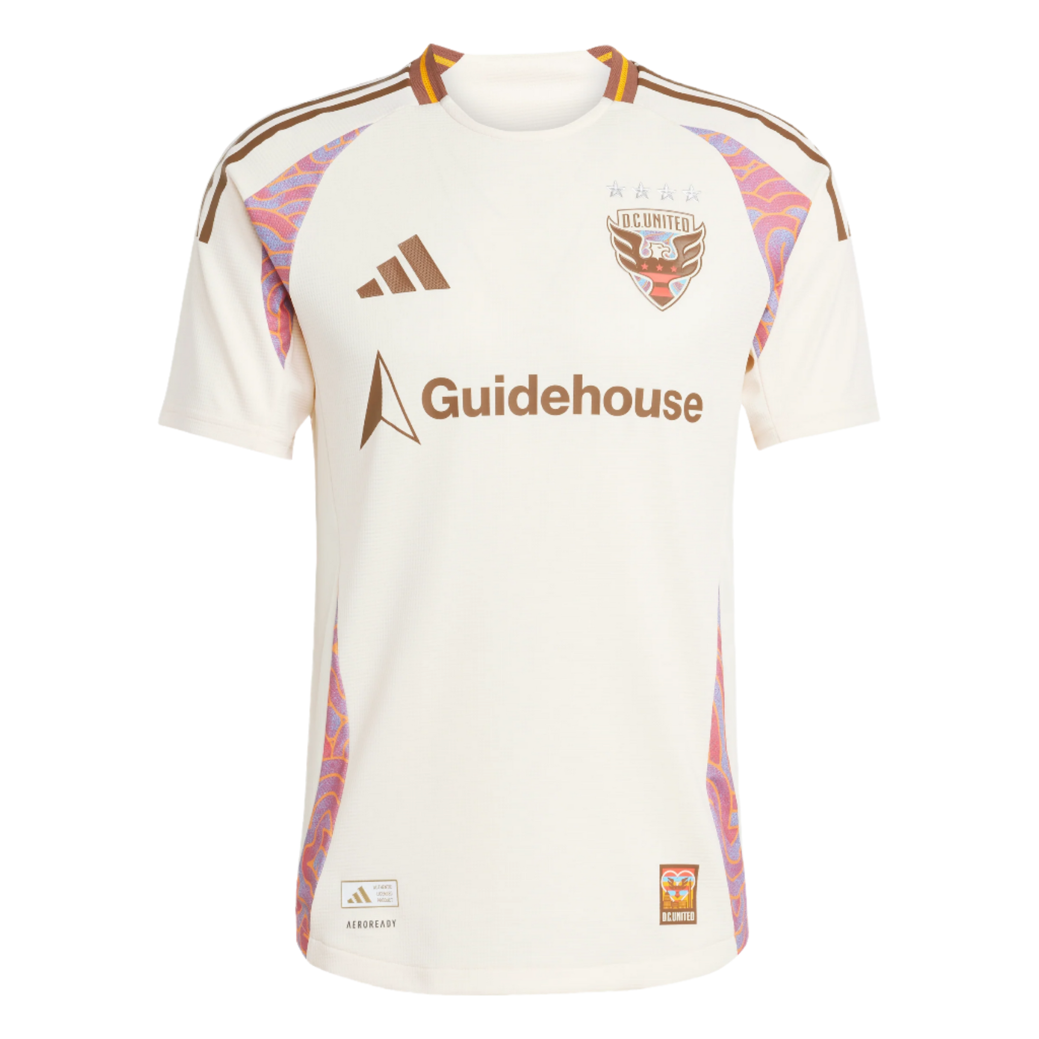 - Sing for D.C. United and the music that shaped their home city. A tribute to Washington, D.C.'s rich funk and soul heritage, this adidas away authentic jersey adopts a bold '70s aesthetic with cream, brown and orange colors and kaleidoscopic details. Crafted for on-field harmony, it's made with moisture-managing AEROREADY and finished with a heat-applied badge and two special sign-offs.