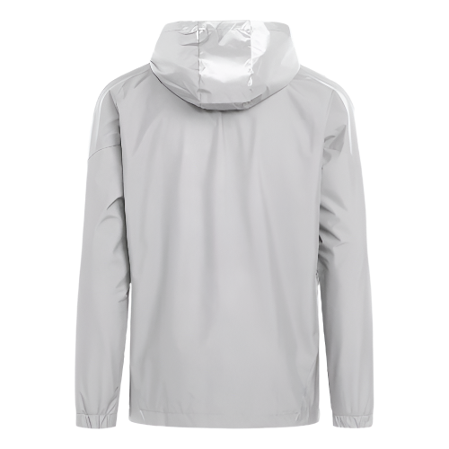 Beat the elements in your favorite soccer colors. This adidas D.C. United jacket is designed to help you power through on the training field. That hood keeps you dry during light showers but packs away when you need a more streamlined silhouette. Printed onto the soft plain weave fabric, a team badge shows where you find your inspiration.